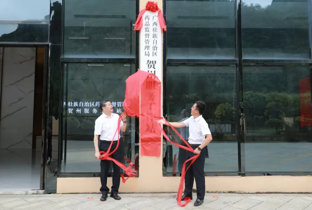 9月22日,AG百家乐党组书记、局长李勇强和贺州市人民政府副市长冯旭波为AG百家乐贺州服务工作站揭牌,广西中健药业科技有限公司现场顺利递交申报材料,标志着服务工作站从“试运行”全面转向“实质性运营”。